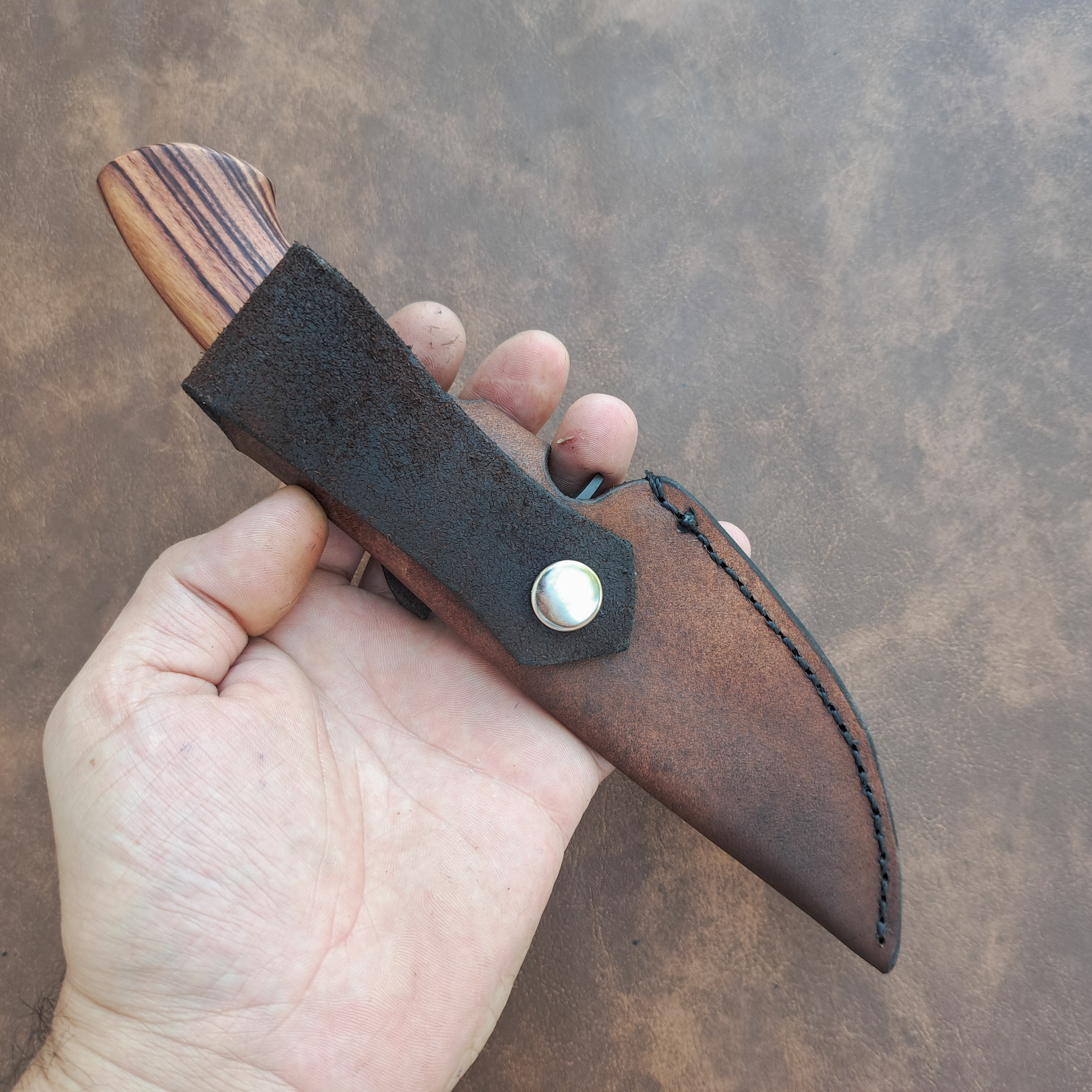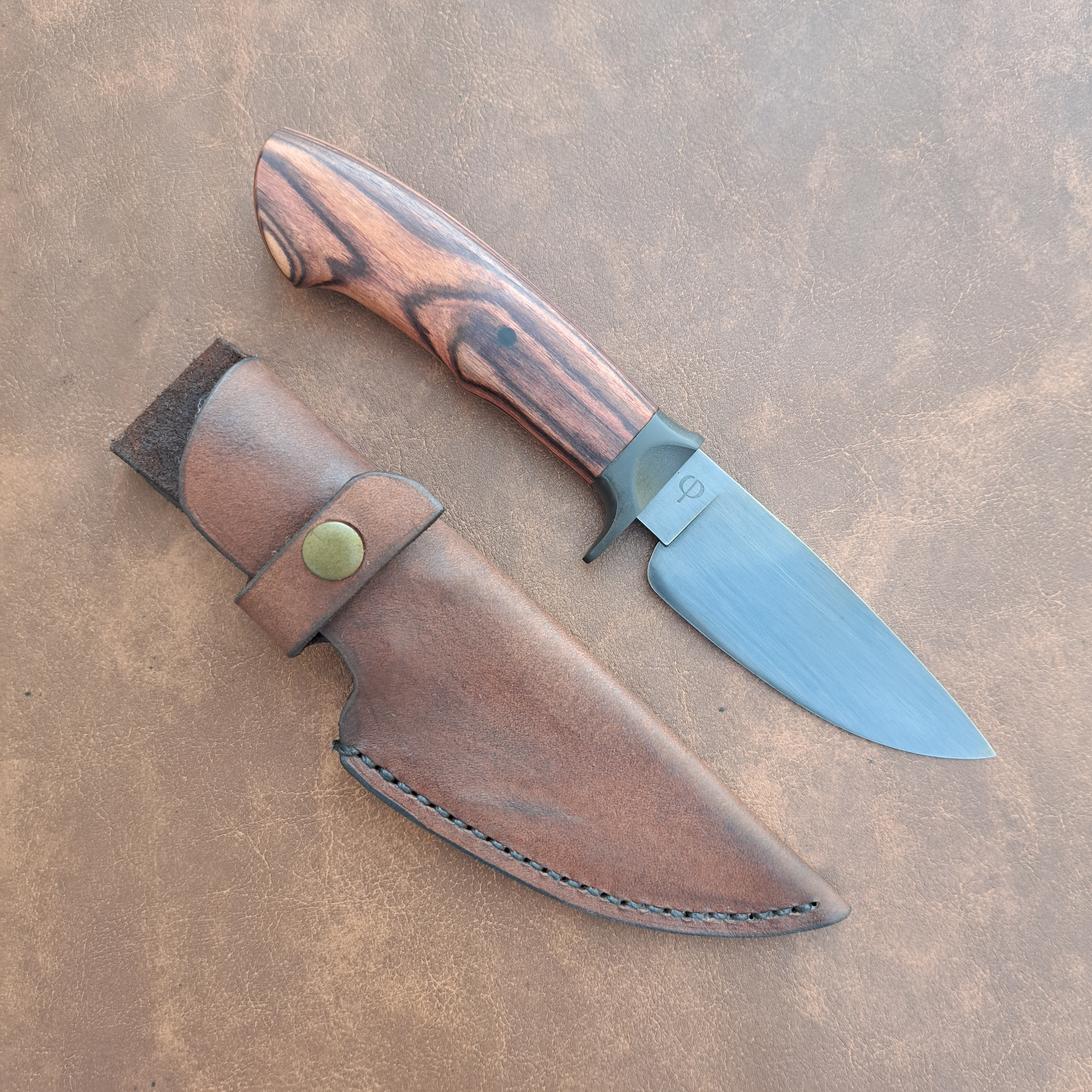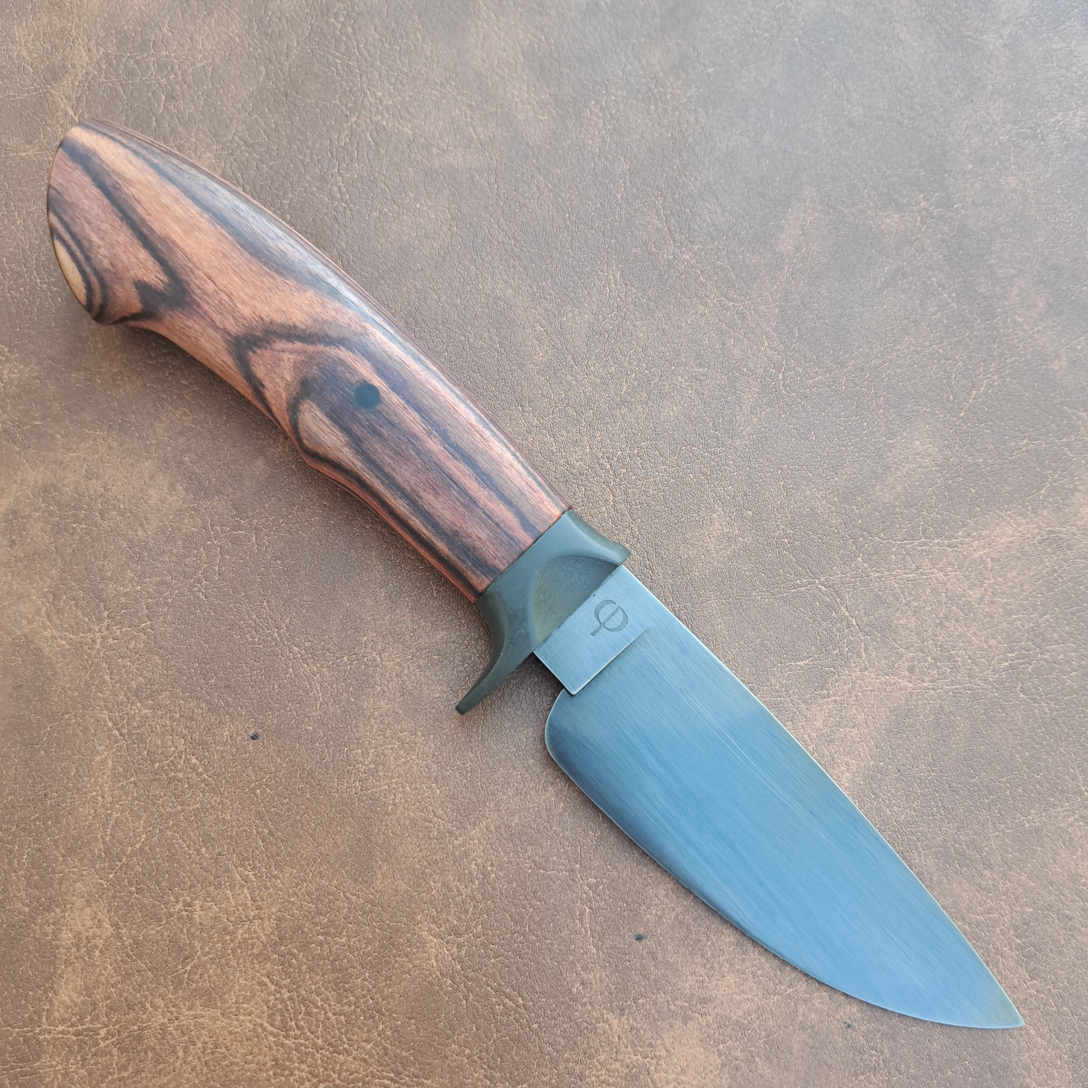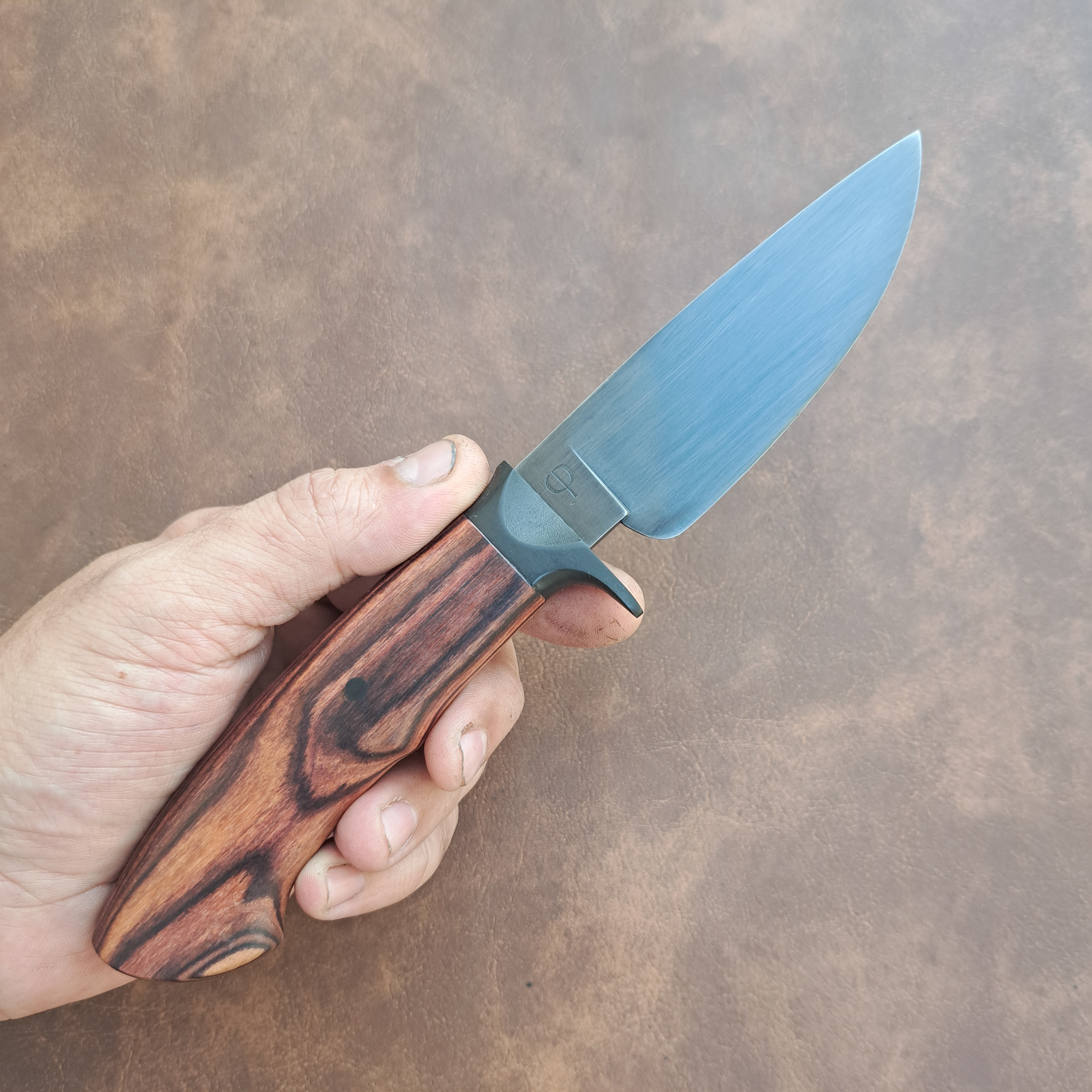 Anteia is a small hunting knife with a blade made from 1070 steel. Its curvature and edge geometry are designed for better performance in finer cutting tasks, such as field dressing, cleaning carcasses, and cutting meat, leather, and tendons. The blade features a satin black oxide finish.